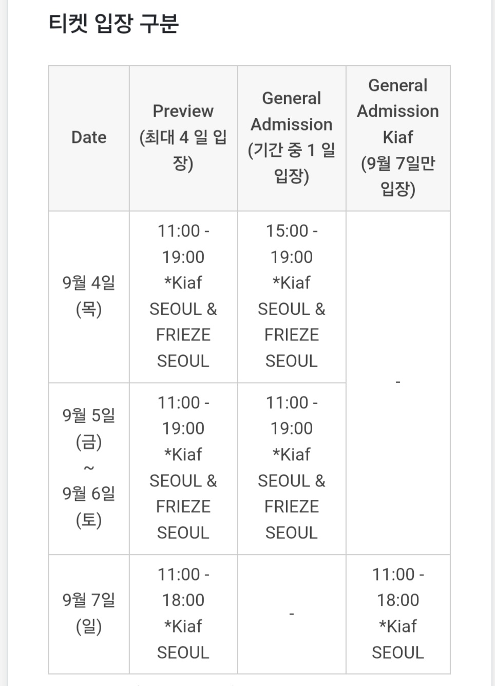 * General Admission Kiaf (9월 7일만 입장 가능)